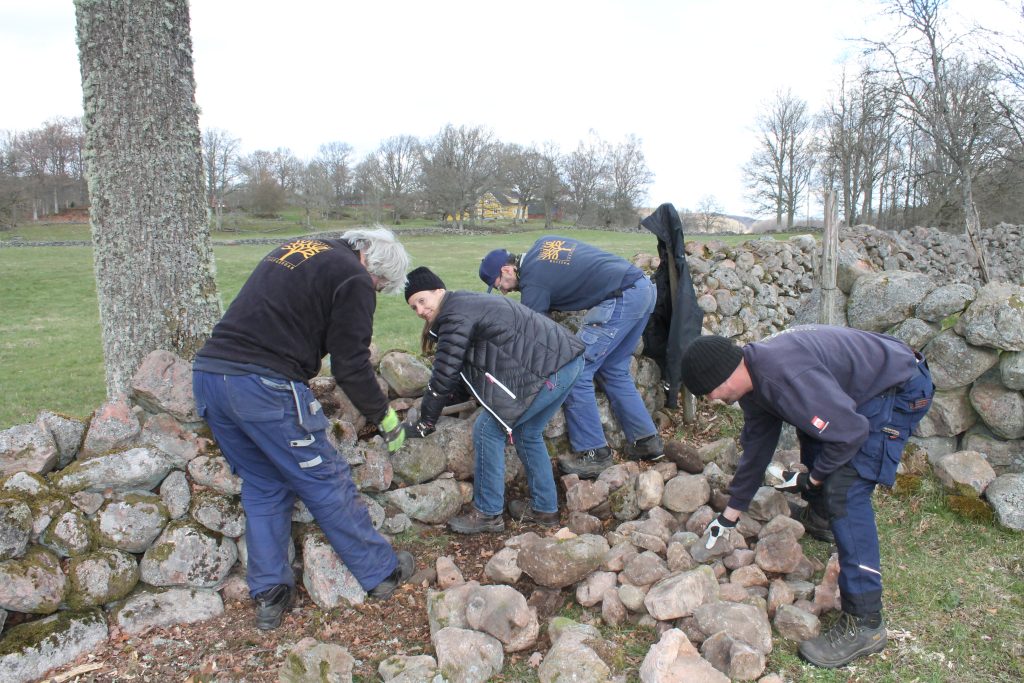 Under kursen varvas byggnads- och landskapsvård efter årets växlingar.  Under sensommaren studeras kulturlandskapets historiska utveckling med ängsslåtter och studier av gamla trädgårdar. Parallellt arbetar vi med olika typer av tak, fasader och avvattning. Framåt hösten går vi vidare med murning, putsning och studerar olika uppvärmningssystem. Under vintern arbetar vi med byggnaders insida och olika tekniker som används där.